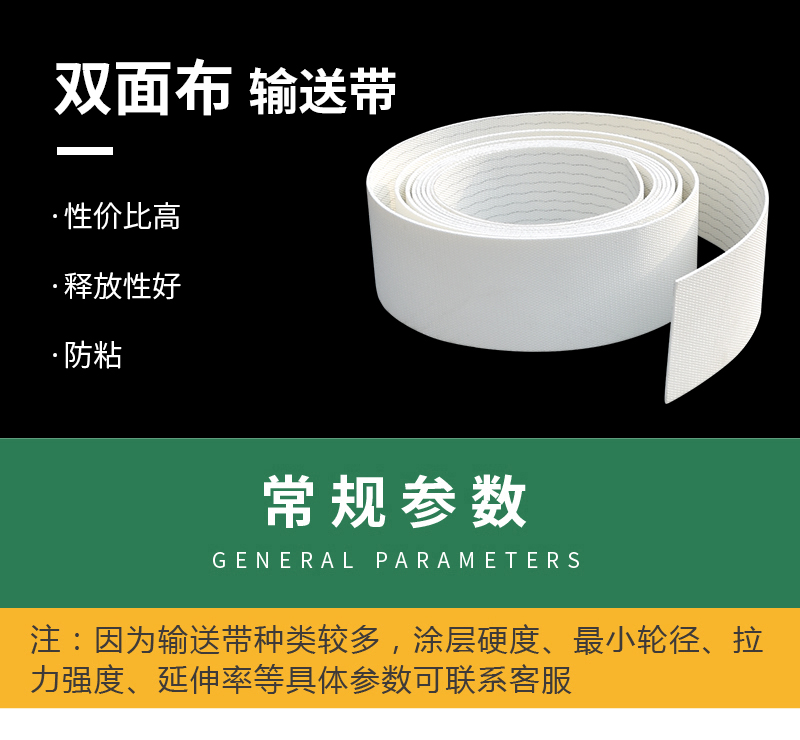 双面纱输送带释放性好,具有防粘的特性,用于输送粘性的物料