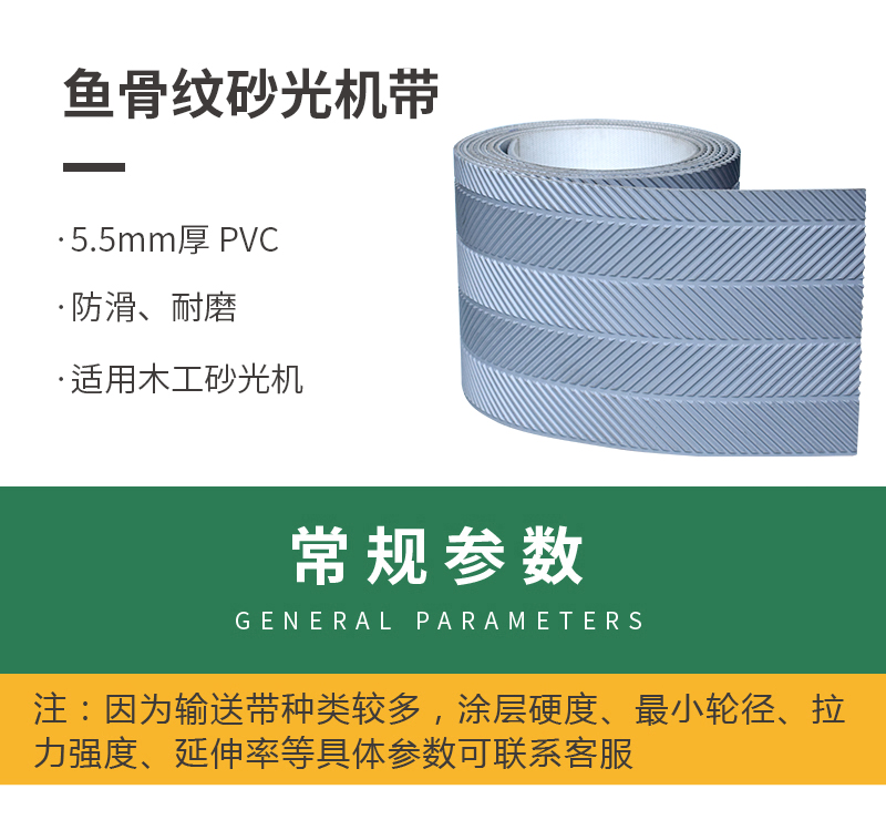 鱼骨纹输送带 PVC材质,具有耐磨、防滑的特点,适用于木工行业砂光机中。