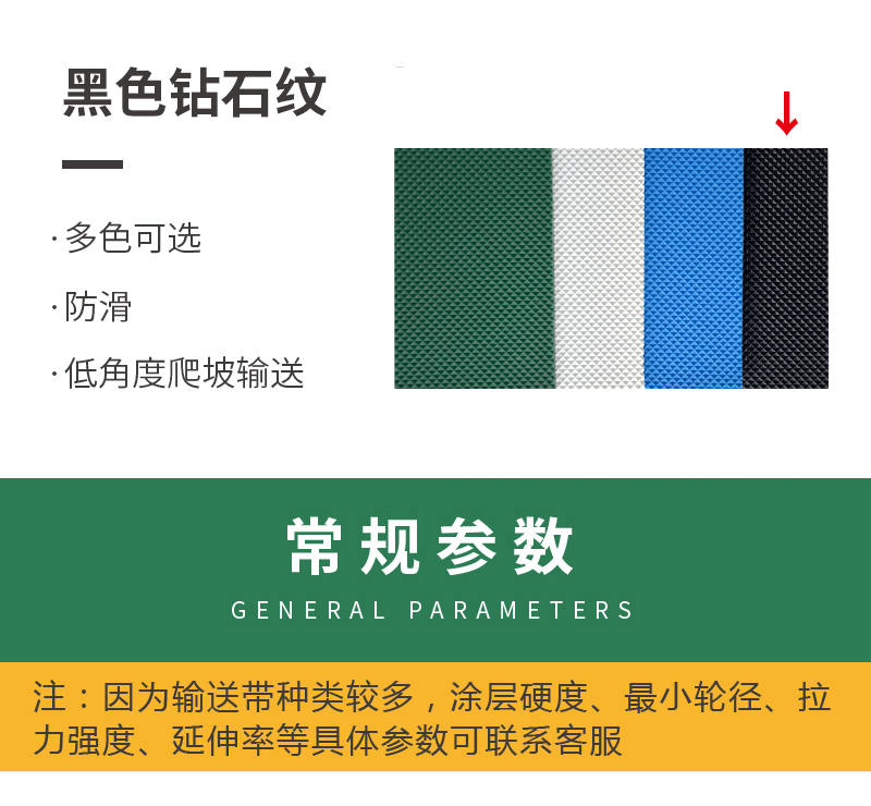 黑色钻石纹输送带 PVC材质,工作温度-10°到+80°