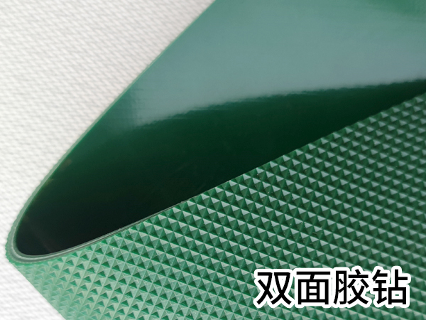 2mm厚度的绿色钻石纹输送带,材质为PVC,两布两胶
